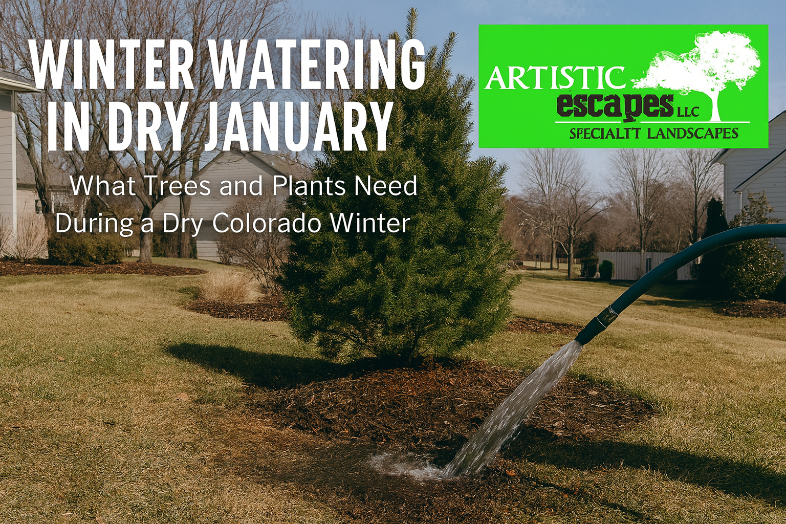 The boNorthern Colorado is no stranger to dry winters, but this year’s combination of low precipitation, warm spells, and strong winds is creating especially harsh conditions for trees, shrubs, and perennials. Even though your landscape is dormant, it still needs moisture to survive until spring. Winter watering is one of the simplest and most effective ways to prevent drought stress, root damage, and plant loss. According to Northern Water, stretches of dry, sunny, windy weather can quickly pull moisture from the soil, putting plants at risk long before spring arrives. And Denver Water notes that high winds and prolonged dry periods can dry out trees faster than most homeowners realizeDenver Water. Here’s what you need to know to keep your landscape healthy through this unusually dry Colorado winter. 🌲 Why Winter Watering Matters in Colorado Colorado’s Front Range receives far less winter moisture than the mountains, and even when it snows, it often isn’t enough. It takes 10–13 inches of snow to equal just one inch of rain, and during very cold weather, it can take up to 50 inches of snow to provide the same moisture. This means your landscape may be far drier than it looks. Dry soil + high winds + warm winter days = stressed plants. When plants go too long without moisture: Roots dry out and die back Trees leaf out later in spring Growth slows Plants become more vulnerable to pests and disease Evergreens turn brown or show winter burn Skipping winter watering now can lead to expensive replacements later. 💧 When Should You Water? Northern Water recommends watering any time your area has gone more than one month without at least one inch of precipitation. Much of Northern Colorado is already past that threshold. Follow these guidelines: Water once or twice a month during dry periods Choose a day above 40°F Water midday so it can soak in before temperatures drop Only water when the soil is not frozen and there is no snow cover 🌳 How to Water Trees in Winter Trees—especially young, newly planted, or shallow‑rooted varieties—are the most vulnerable to winter drought. Watering Tips for Trees Start at the base and water out to the drip line, where the longest branches reach Apply water slowly so it penetrates 12 inches deep into the soil Use a hose with a soft spray, a soaker hose, or a deep‑root watering tool For each inch of trunk diameter, apply 10 gallons of water during winter dry spells Trees That Need Extra Attention According to Colorado arborists, the most vulnerable trees include: Evergreens (especially spruce) Newly planted trees Trees already stressed by pests, disease, or construction Trees in south‑ or west‑facing areas exposed to strong sun and wind 🌿 What About Shrubs and Perennials? Shrubs, ornamental grasses, and perennials also need occasional winter watering—especially if they were planted within the last two years. Focus on: South‑ and west‑facing beds Areas with rock mulch (which heats up and dries soil faster) Newly installed plants Xeriscape beds without irrigation Even drought‑tolerant plants need moisture to survive winter drought. 🧱 Don’t Forget Mulch Mulch is one of the best defenses against winter drought. Northern Water recommends 2–4 inches of wood mulch around trees to help insulate roots and retain moisture. Keep mulch a few inches away from the trunk to prevent rot. Mulch also protects: Perennials Shrubs Xeriscape beds Newly planted areas 🌬️ High Winds Make Winter Watering Even More Important This year’s strong winds are accelerating moisture loss. High winds dry out both the soil and the needles or leaves of evergreens, increasing the risk of winter burn. If your property is exposed to wind: Water more frequently Check soil moisture often Add mulch to protect roots Consider temporary windbreaks for young evergreens 🌱 Final Thoughts: A Little Water Now Saves a Lot Later Winter watering is one of the easiest ways to protect your landscape investment. A few gallons of water can make the difference between a thriving spring landscape and costly plant loss. At Artistic Escapes Landscaping, we design landscapes that thrive in Colorado’s climate—but even the toughest native plants need help during extreme dry spells. If you’d like help assessing your trees or want winter watering services, we’re here to support you. Sources Northern Water – Winter watering recommendations LAM Tree ServiceLAM Tree Service – Winter drought impacts and plant vulnerability Denver Water – Tree care and winter watering guidelinesdy content of your post goes here. To edit this text, click on it and delete this default text and start typing your own or paste your own from a different source.